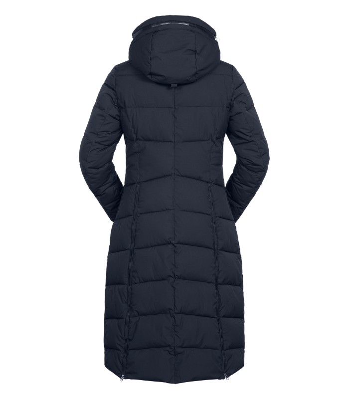 Dlouhý prošívaný kabát s výplní podobnou peří a bohatou výbavou