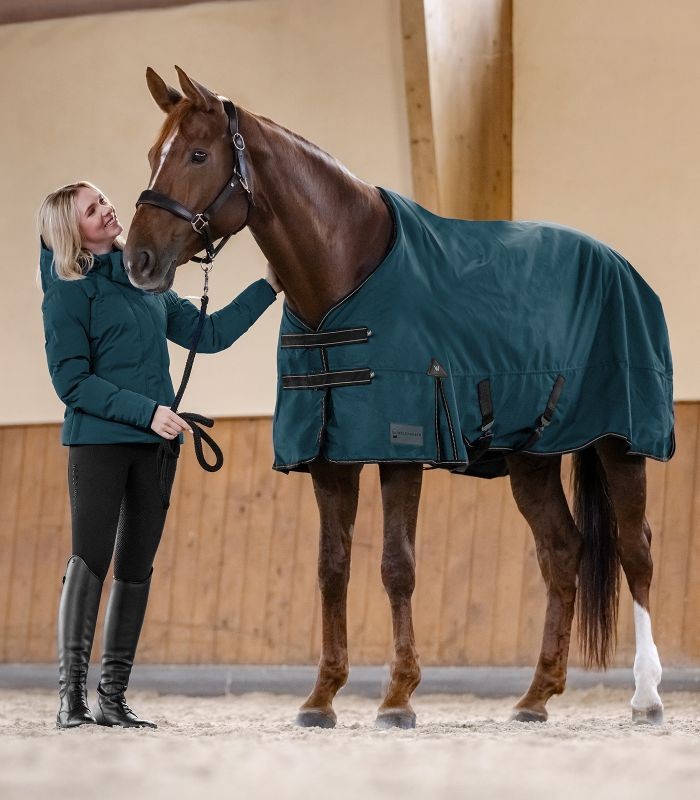 Konec s koňskými žíněmi na dekách, které byly vyzkoušeny pouze jednou. Vložka Stay Clean od Waldhausenu nabízí praktické a inovativní řešení pro hygienické a snadné zkoušení koňských deků, aniž by se zašpinily nebo pokryly chlupy. Vložka je přímo integrována do nových venkovních deků Waldhausen a připevněna k vnitřní straně, čímž se zabraňuje přímému kontaktu mezi koňským hřbetem a dekou. Výsledek: deka zůstává čistá, i když byla použita pouze jednou k zkoušení.