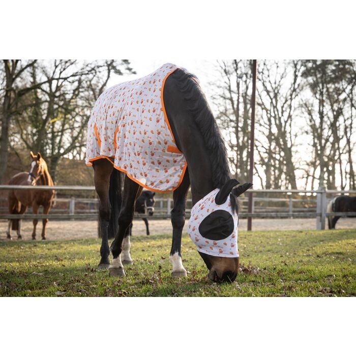 Chrání koně před mouchami a hmyzem, UV ochrana, ochranný faktor 50+. Strečový materiál, elastický materiál velmi lehký.