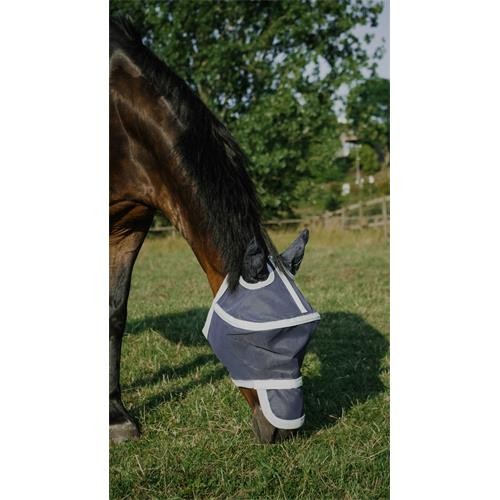Maska s obručí zajistí Vašemu koni optimální komfort a vysokou ochranu proti hmyzu. Chrání před slunečním zářením s UV ochranou 50. Praktická a nastavitelná maska se zapínáním na 2 suché zipy včetně odepínací krytky na nos, která je připevněna na dvojitý suchý zip.