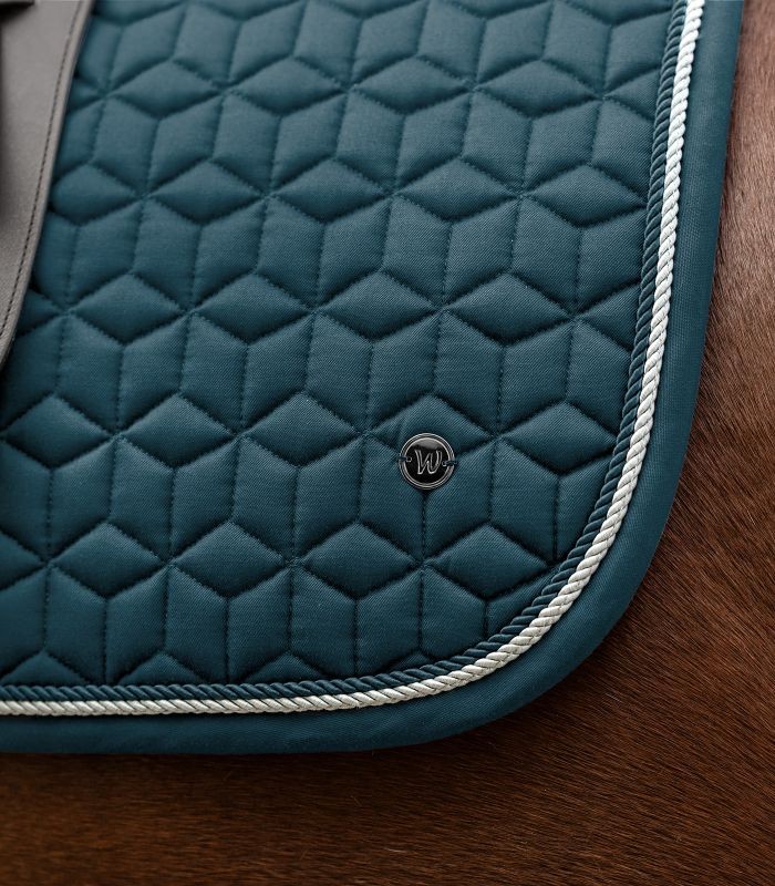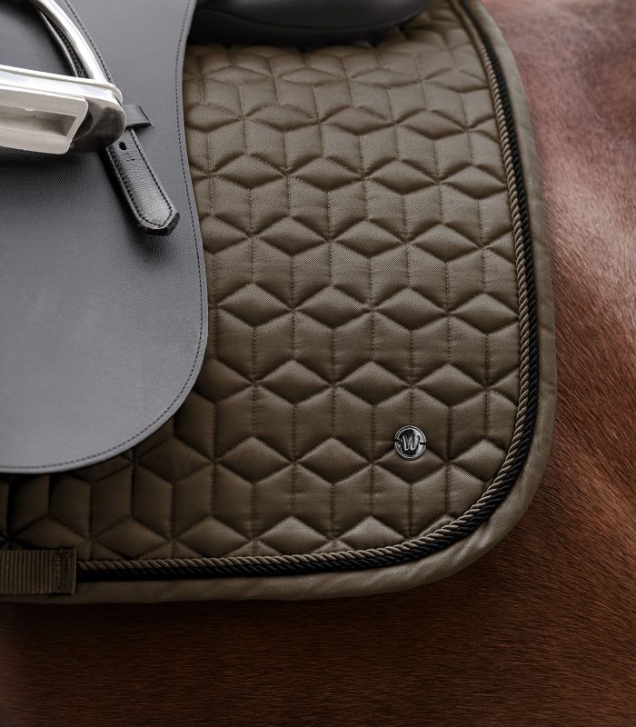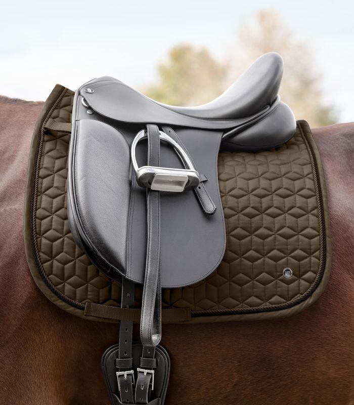 Klasická podsedlová podložka s atraktivním a neobvyklým prošíváním. Kovová destička a dvě ozdobné šňůrky dokonale doplňují podsedlovou podložku. Funkční spodní strana zajišťuje optimální prodyšnost. 10mm pěna a výplň 200 g/m² zajišťují optimální rozložení tlaku. S odnímatelnými poutky na suchý zip.