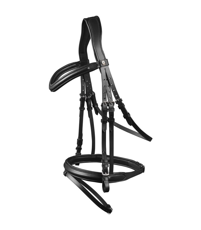 - Anatomicky tvarovaná čelenka - Nánosník, nátylník a čelenka s měkkou podšívkou - Kování z nerezové oceli - 19mm síťované otěže