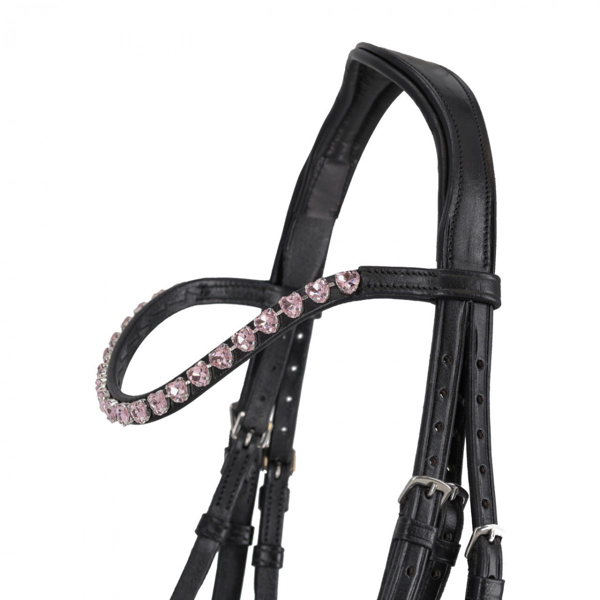 Kožená uzdečka značky QHP pro poníčky z měkké kůže. Nátylník je anatomicky tvarovaný, podložený, velmi měkký.