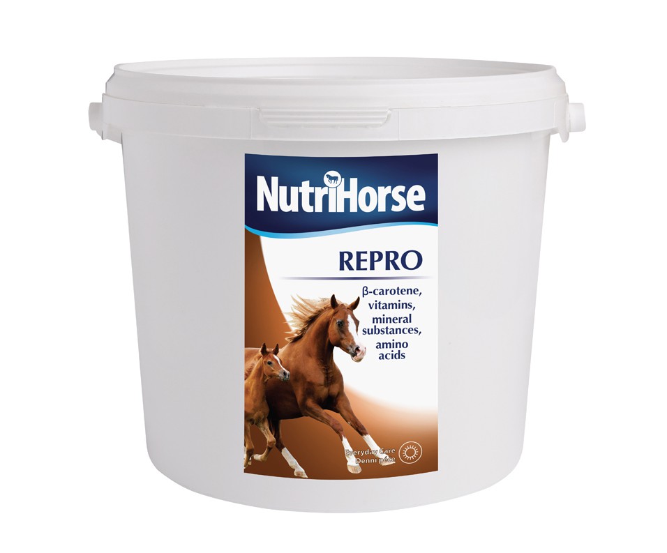 Doplňkové krmivo pro vysokobřezí a laktující klisny a hřebce v připouštěcím období. Beta-karoten má pozitivní vliv na funkci vaječníků, zajišťuje kratší a intenzivnější říji, působí na plodnost a spolu s vitaminem E ovlivňujícím březost zajišťuje optimální průběh reprodukce a životaschopnost hříbat. Komplex vitamínů skupiny B zvyšuje intenzitu metabolismu u vysokobřezích a laktujících klisen a hřebců v připouštěcím období. Taurin je aminokyselina, která je obsažena v mléce klisen a zajišťuje optimální růst a vývin hříbat. Taurin rovněž podporuje kardiovaskulární a imunitní systém klisen a hřebců. Do přípravku je zařazen přírodní rozmarýnový antioxidant. Každodenní podávání v doporučených dávkách má pozitivní vliv na celkový zdravotní stav, zabřezávání a průběh březosti a laktaci u klisen. Přípravek neobsahuje všechny důležité vitaminy a minerální látky a proto je nutné ho podávat spolu s NUTRI HORSE STANDARD v období reprodukční zátěže.