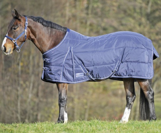 Prodyšná stájová deka vyrobená z 840 D polypropylen materiálu, podložená hladkým fleecem podél zad. Deka je vhodná jako mezisezónní nebo v období, kdy je chladněji. Deka má dvojí nastavitelné zapínání v přední části, křížové zapínání pod břichem, všité klíny při předních nohách pro větší volnost pohybu, integrovaný chránič ocasu, popruhy mezi zadníma nohama a v oblasti kohoutku je měkce podložená. Deka má extra hrubý fleece zespod deky, lze ji tedy dobře použít i jako deku odpocovací, která se pak nemusí koni měnit a může mu zůstat jako deka stájová. Je prodyšná a odvádí vlhko od těla koně směrem ven. Je z vysoce kvalitního materiálu, který se netrhá. Materiál: vnější: 100% polypropylen, podšívka: 100% polyester. V nabídce v barvě tmavě modré a ve velikostech 125, 135, 145 a 155 cm.